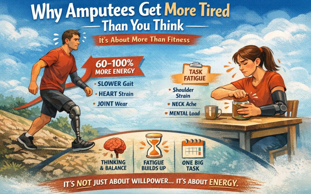 Fatigue after limb loss is real, physical, and often invisible — and it affects people very differently depending on whether they have an upper-limb or lower-limb amputation.